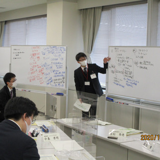 時間が経つとだんだんと慣れてきたのか、ホワイトボードを使いながら自分たちの班の考えをまとめていきました。鈴木先生も積極的に話し合いに参加しています。